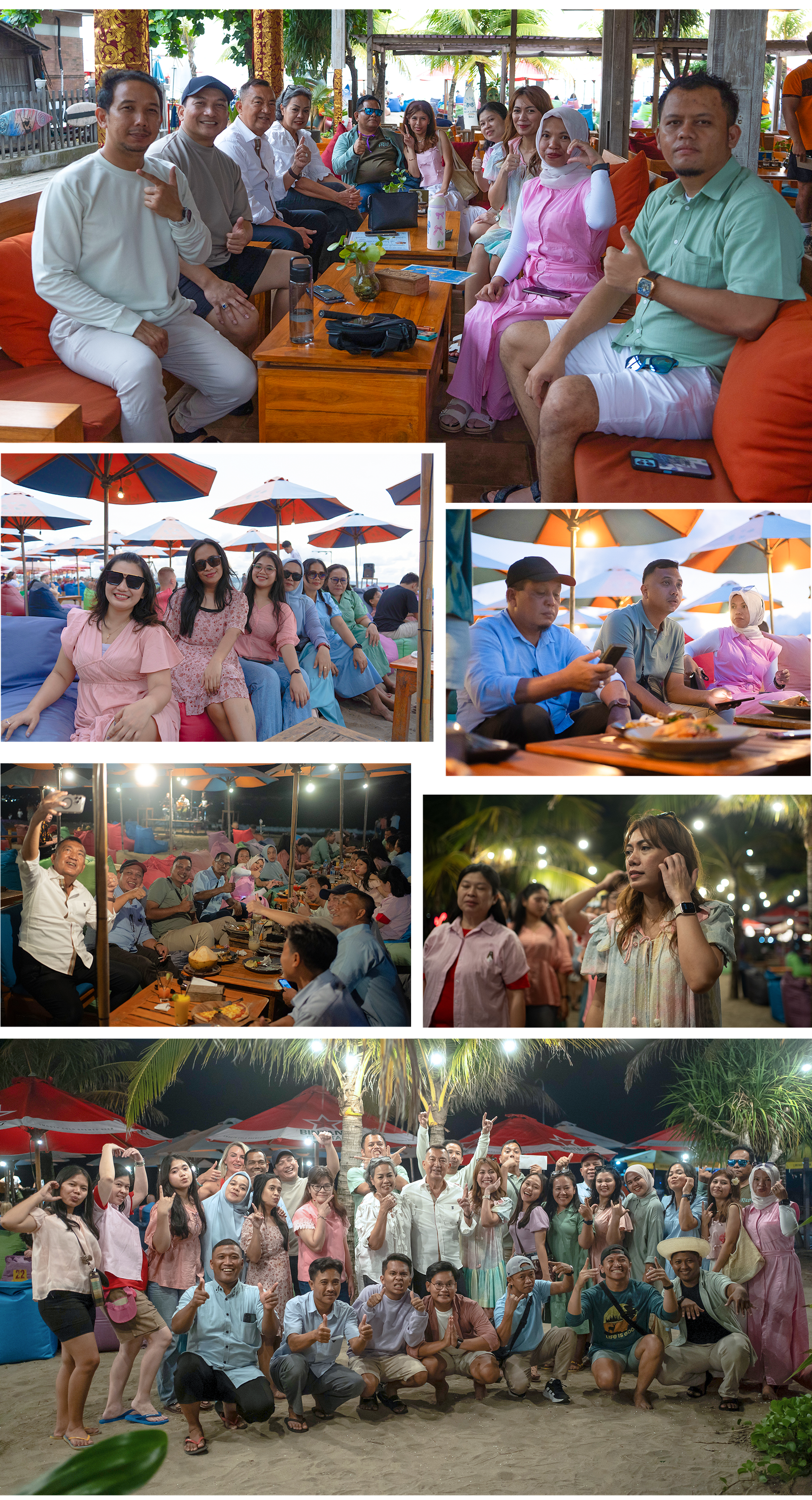 Pada sore hari, kegiatan dilanjutkan dengan kunjungan ke pantai untuk menikmati keindahan alam Bali. Seluruh peserta menghabiskan waktu di tepi pantai, menikmati angin laut, panorama senja, hingga suasana malam yang menenangkan. Hari ketiga pun ditutup dengan rasa kebersamaan yang semakin kuat, menjadikannya salah satu momen paling berkesan selama rangkaian kegiatan di Bali.